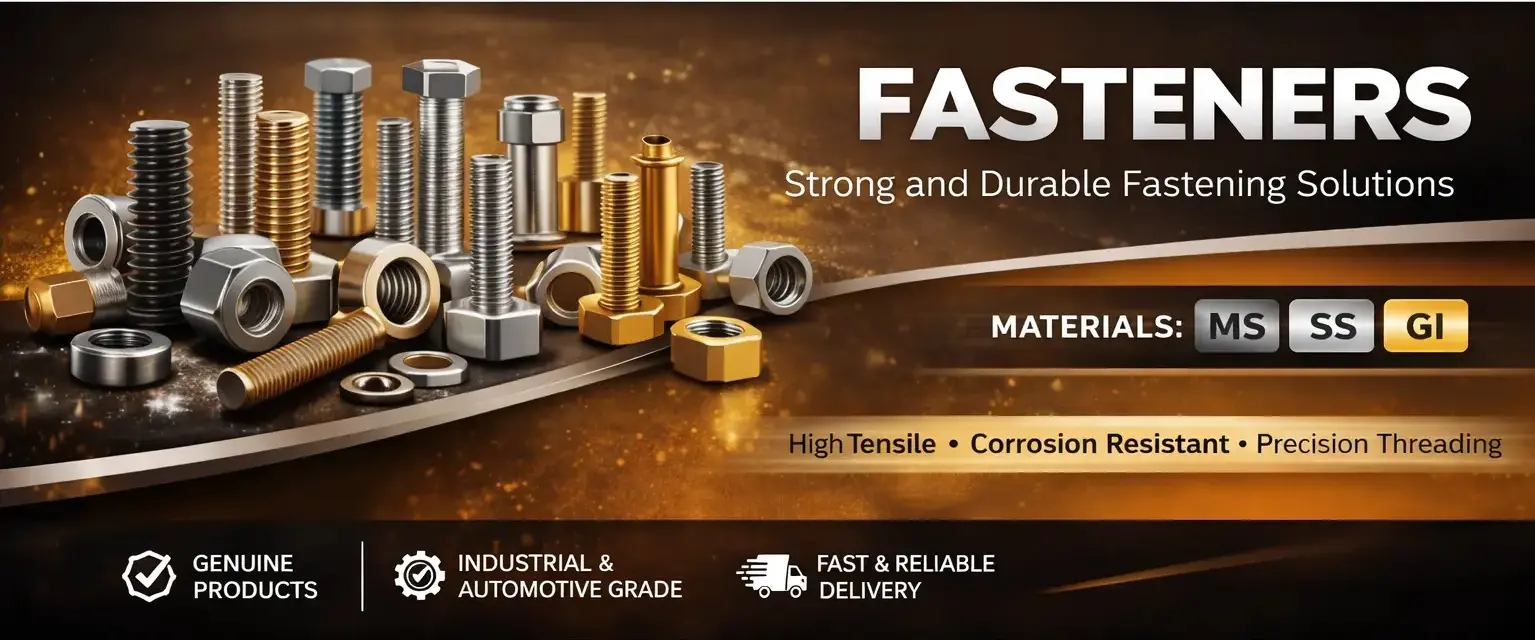 Our fastener range includes MS, SS and GI bolts, nuts, washers and fixing components used for secure and reliable connections in industrial and construction applications.